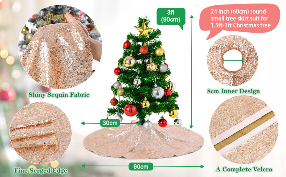 HELAKU Christmas Sequin Tree Skirt 24Inch Mini Rose Gold